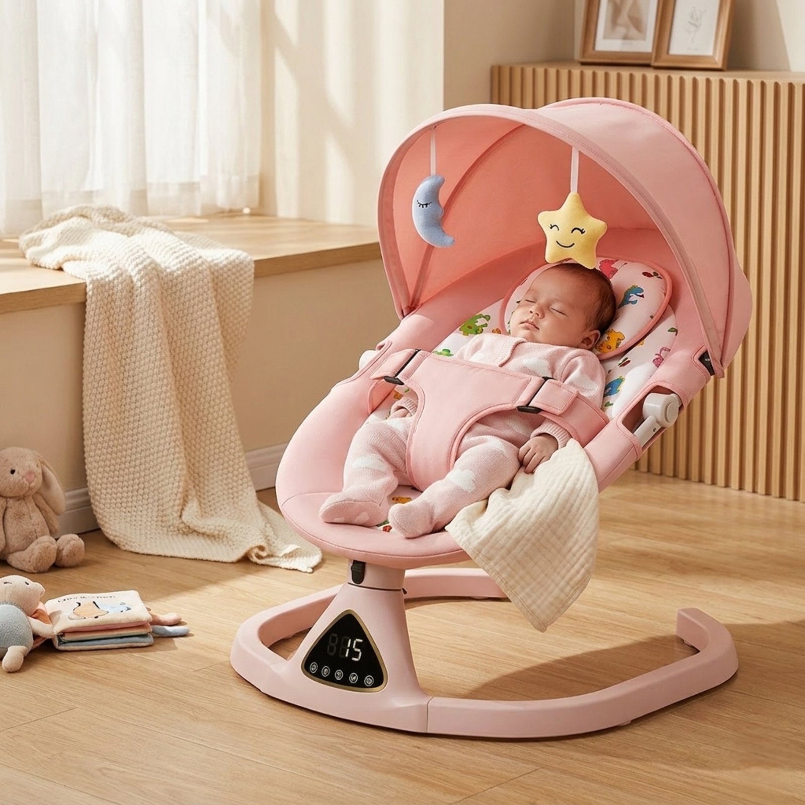 AMBERZ (BS-165) 5-in-1 Smart Electric Baby Swing Bouncer – 5-Speed Rocker, Bluetooth Music, Remote Control Timer and Washable Seat for 0 to 12 Months Baby.
