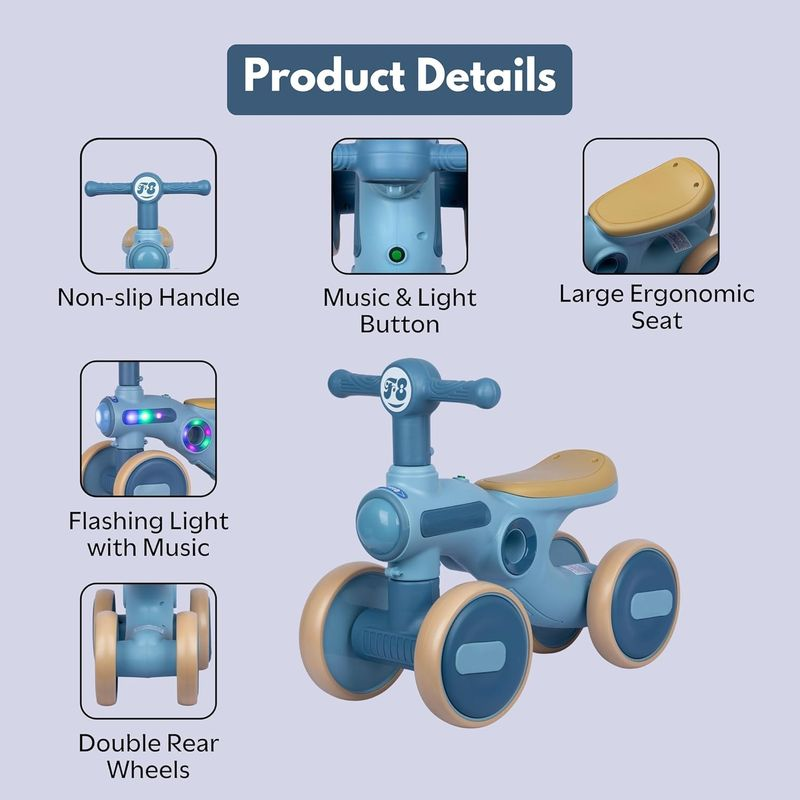 • Music & LED Light Feature – Fun musical tunes and colorful LED lights keep your little one entertained while riding, making every ride exciting and engaging.